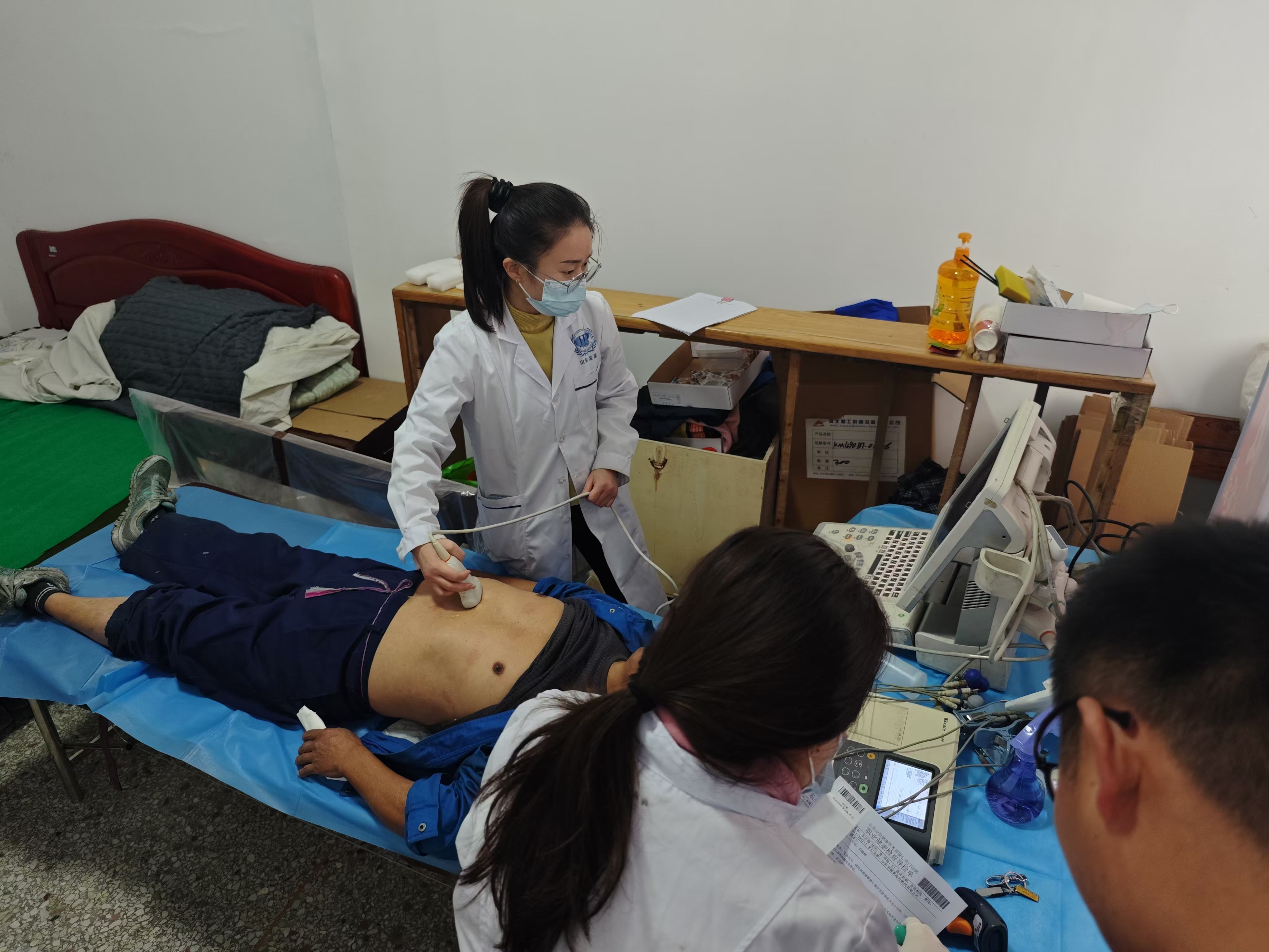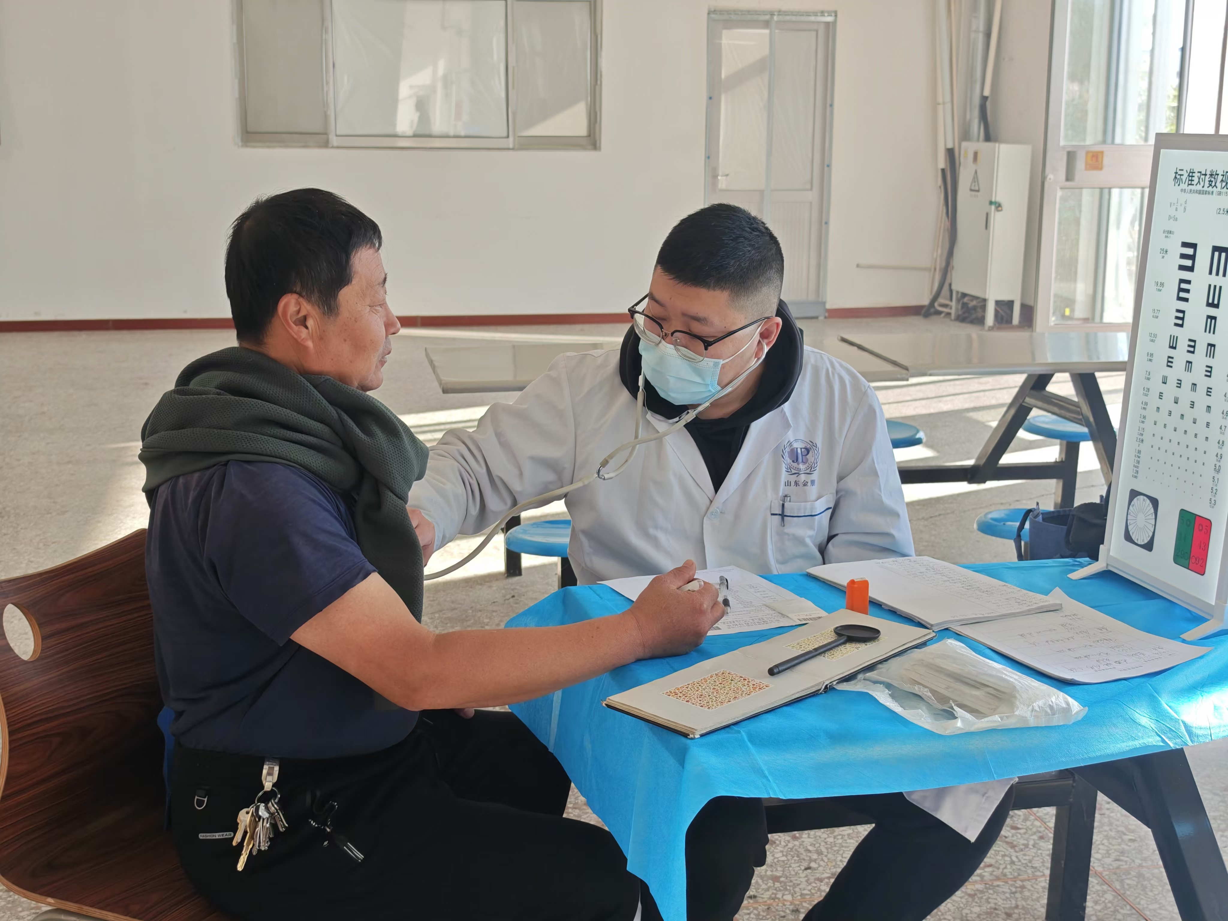 为让职工“足不出户”舒心查体,公司与医疗查体机构进行沟通,将查体地点设在公司职工食堂大厅。检查项目包括一般检查、五官科、内科、外科、神经系统和辅助检查等方面,其中辅助检查包括血常规、尿常规、肝功、肾功、胸超、心电图、电测听等多项检查。检查完毕后,公司相关部门为体检职工准备了面包、火腿肠、牛奶等食品。